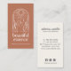This whimsical boho business card features an elegant logo of a woman’s silhouette adorned with delicate leaves and a crescent moon, all set within a graceful arch frame in a warm organic monochrome palette of terracotta and ivory. The front of the card highlights this stunning design alongside two customisable lines of text, ideal for showcasing your business name and tagline. On the reverse side you have ample space for your contact details and social media icons ensuring seamless communication with your clients.