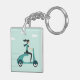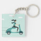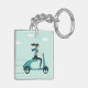 A woman speeding along on a scooter. This design looks really effective on these Keychain