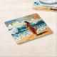 Woman on Beach Abstract Seaside Art Square Paper Coaster