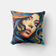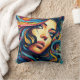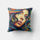 Decorate your living space with this fun throw pillow in a pop art style featuring a woman's face in vibrant colours.