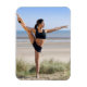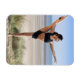 woman practicing yoga on beach wearing magnet