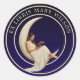 Woman Reading On Crescent Moon Ex Libris Template Classic Round Sticker