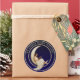 This is an Ex Libris bookplate design featuring a woman on a crescent moon reading a book. You can easily personalise the text and customise the background colour in this template.