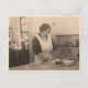 Vintage photo of a woman in an apron rolling out dough with a rolling pin in a cool retro kitchen.
