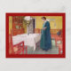 Vintage watercolor by Swedish artist Carl Larsson. Mother in dark blue dress laying out the china on to the table.