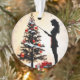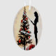 Woman Silhouette with Decorated Christmas Tree Ornament