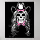 Woman skull graphic Halloween cowgirl pink chequer Poster