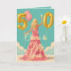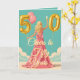 Cheers to a golden milestone! This 50th birthday card features a stylish woman in a flowing pink dress, raising a glass to the occasion. The design is accented with large golden '5' and '0' balloons. The text on the front, "Cheers to Fifty Years!", is completely customisable, as is the message inside.