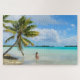 Woman under a palm tree in the Pacific Jigsaw Puzzle