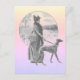 Woman walking greyhound dog vintage postcard