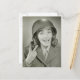 Woman in army helmet showing v-sign, portrait | George Marks | AssetID: 80087699