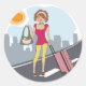This design is a woman with a suitcase. She is standing on the side of the road with her pink suitcase and also holding a handbag. She is ready to go somewhere. This woman with a suitcase design looks great