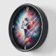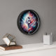 The size of the clock is dramatic and the abstract alcohol ink design is soothing and intricate at the same time. I chose the black frame that adds pop to the blue and gold design. The gold printing would be better in a slightly darker or larger font. I love it and I’m looking for just the right place in ny new apartment. I would recommend this clock for a personal gift or a present. I feel that the quality is excellent for the money! I’m a bit of a clock nut so I’m pretty particular about my purchases. The clock is larger in diameter than many if the clocks I have, so it stands out very well. I think a slightly darker printing color and a moderately larger size would best suit a professional decor or add more impact in a work place item.