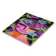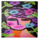 My colourful abstract portrait of a woman with flowers is printed on ceramic tile