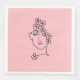 Line artwork of a female face with flowers. One line drawing. Contemporary art. Woman with flower. Woman portrait with line on pastel pink background. Minimal woman face. Women in art.