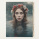 AI generated beautiful woman with boho flowers on her head floats in a pond