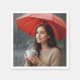 Woman With Hot Coffee Cup Under a Red Umbrella Napkin