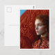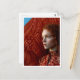 Woman with red hair by a painting of red horses postcard