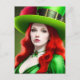 AI generated art of a beautiful woman with red hair in her St. Patrick's Day finest clothes.