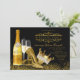 Womans black and gold birthday party invitation with beautiful gold glitter high heel shoes and elegant princess or queen crown with gold champagne bottle and glasses on a fancy black and gold background. You can easily customise this elegant black and gold birthday party invitation for your event by simply adding your details. You can add the text of your choice to the bottle, and you can choose your own background on the back side. Simply delete the one(s) you don't want. This is a printed design with no real glitter, jewels, etc.