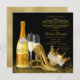 Womans elegant black and gold birthday party invitation with beautiful gold high heel shoes and elegant princess or queen crown with gold champagne bottle and glasses on a fancy black and gold background. You can easily customise this elegant black and gold birthday party invitation for your event by simply adding your details. You can add the text of your choice to the bottle, and you can choose your own background on the back side. Simply delete the one(s) you don't want. This is a printed design with no real glitter, jewels, etc.