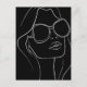 Woman's Face in Sunglasses Line Art Retro Black Postcard