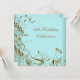 Teal blue and gold flower and butterfly swirl flourish overlay woman's elegant fiftieth birthday party invitation.