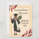 This is an elegant graduation card for a woman. The card features an image of a woman graduate with leaves, spots and a gold border. Customise the text on the cover and inside to personalise the card.