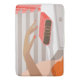 Womans hand pushing on alarm clock snooze button bath mat