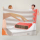 Womans hand pushing on alarm clock snooze button fleece blanket