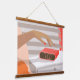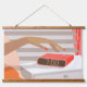 Womans hand pushing on alarm clock snooze button hanging tapestry