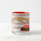 Womans hand pushing on alarm clock snooze button Two-Tone coffee mug