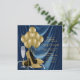 Womans Royal Blue and Gold Birthday Party Satin Invitation