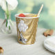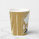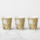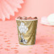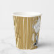 Womans silver and gold birthday party paper cups with silver glitter high heel shoes, pearls and balloons on an elegant gold satin and silver swirl background. You can add the text of your choice to these pretty silver and gold paper cups. You can remove the champagne glass.