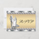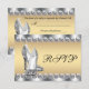 Womans silver and gold birthday party RSVP with beautiful silver glitter high heel shoes on a gold diamond background. This beautiful silver and gold RSVP is easily customised for your event by simply adding your event details, font style, font size & colour, and wording. This is a printed design with no real glitter, jewels, foil, etc.
