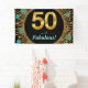 Woman's 50th birthday party banner with teal blue and gold dots and starburst with beautiful gold numbers and black background. You can add the text of your choice to personalise this pretty teal blue and gold birthday party banner.