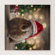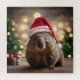 This image shows the festive warmth of a wombat in a Santa hat, set beside a Christmas tree and gifts with a magical bokeh background.