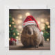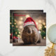 This image shows the festive warmth of a wombat in a Santa hat, set beside a Christmas tree and gifts with a magical bokeh background.