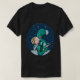 I give wanted to give this a 4 instead of a 5 because these Basic DARK T0shirts run unexpectedly SLIM or Narrow. Which is great if you do not have a potbelly, but I have a paunch. It isn't the shirt's fault that I've got a beer belly. The design and shirt itself is a quality cotton shirt. The color is more of a deep purple, but still a very pretty color. The Basic DARK T-shirts run a bit SLIMMER than the Basic Ts. The neck is a fraction narrower (or seems to be narrower) also. I'm a paunchy middle-aged woman and my neck is 12 inches (31cm) thick and the neckline fell about the same as in the photo of the man, and I had the desire to tug it a bit. So if you're a thick necked man or like loose shirts, be aware these are slimmer shirts. Once I get rid of my lockdown paunch it'll look great. The shirt washed well in cold water with no apparent bleeding. We don't have a dryer, so it hung dry. Did not shrink. Love the colors and the design. The design looks smaller on my shirt than it does on the model on-line. But still, it looks good on the shirt. The printing looks as it does on the model, just the size seems fractionally smaller. Washed garment in cold water, hung dry and design appeared unaffected.