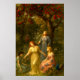 Women, Butterflies & Peacock In Garden Poster