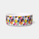 This is a heavy, durable bowl decorated with Tibbies of many colors, the perfect size for hungry/thirsty Tibs. The design is interesting and printing clear.
