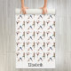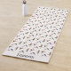 This yoga mat features a repeating pattern of yoga women in different poses designed by Destei. One flows into dancer pose, another holds downward facing dog and the third balances in tree pose. Each wears a different outfit with color combinations of pink and black, blue and white, and green and brown. The illustrated poses bring movement and energy to the design. The mat also includes a personalizable text area where you can add a name, making it a unique and stylish addition to any yoga practice.