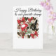 This card is great fun and good quality. I loved the humour inside and on the back. There is the opportunity to change the orientation of this card from landscape to portrait, which I did. It is relatively straightforward to amend the typeface to fit the new orientation. It was well packaged with no plastic. The printing on this card is excellent.