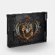 Women of heart card in flames. Dynamic, orange and yellow flames that convey a sense of energy and passion. These flames seem to wrap around the card, adding a dramatic touch to the entire design. A women of hearts rises majestically from the centre of the hearts card. The design conveys a sense of passion, power and mysticism