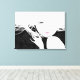 Wrapped canvas art is shown with a graphic print of a flirty women.