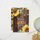 Women's 50th birthday party (or any age) Thank you card with a rustic wood design decorated with bright yellow sunflowers and glittering string lights and lanterns.