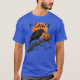 I give wanted to give this a 4 instead of a 5 because these Basic DARK T0shirts run unexpectedly SLIM or Narrow. Which is great if you do not have a potbelly, but I have a paunch. It isn't the shirt's fault that I've got a beer belly. The design and shirt itself is a quality cotton shirt. The color is more of a deep purple, but still a very pretty color. The Basic DARK T-shirts run a bit SLIMMER than the Basic Ts. The neck is a fraction narrower (or seems to be narrower) also. I'm a paunchy middle-aged woman and my neck is 12 inches (31cm) thick and the neckline fell about the same as in the photo of the man, and I had the desire to tug it a bit. So if you're a thick necked man or like loose shirts, be aware these are slimmer shirts. Once I get rid of my lockdown paunch it'll look great. The shirt washed well in cold water with no apparent bleeding. We don't have a dryer, so it hung dry. Did not shrink. Love the colors and the design. The design looks smaller on my shirt than it does on the model on-line. But still, it looks good on the shirt. The printing looks as it does on the model, just the size seems fractionally smaller. Washed garment in cold water, hung dry and design appeared unaffected.