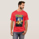 I give wanted to give this a 4 instead of a 5 because these Basic DARK T0shirts run unexpectedly SLIM or Narrow. Which is great if you do not have a potbelly, but I have a paunch. It isn't the shirt's fault that I've got a beer belly. The design and shirt itself is a quality cotton shirt. The color is more of a deep purple, but still a very pretty color. The Basic DARK T-shirts run a bit SLIMMER than the Basic Ts. The neck is a fraction narrower (or seems to be narrower) also. I'm a paunchy middle-aged woman and my neck is 12 inches (31cm) thick and the neckline fell about the same as in the photo of the man, and I had the desire to tug it a bit. So if you're a thick necked man or like loose shirts, be aware these are slimmer shirts. Once I get rid of my lockdown paunch it'll look great. The shirt washed well in cold water with no apparent bleeding. We don't have a dryer, so it hung dry. Did not shrink. Love the colors and the design. The design looks smaller on my shirt than it does on the model on-line. But still, it looks good on the shirt. The printing looks as it does on the model, just the size seems fractionally smaller. Washed garment in cold water, hung dry and design appeared unaffected.