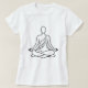The design is a line drawing of a person in a meditative pose. The figure is depicted in a seated position with legs crossed in the lotus position. The arms are extended outward, with the hands resting gently on the knees in a gesture of meditation or prayer. The figure is draped in a simple robe or garment that drapes over the shoulders and across the body.