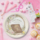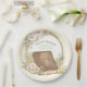 This plate design has a Bible surrounded by a wreath of pink flowers in a wreath with a pink striped background with text that says "Women's Bible Study." You can personalize with your group's name.